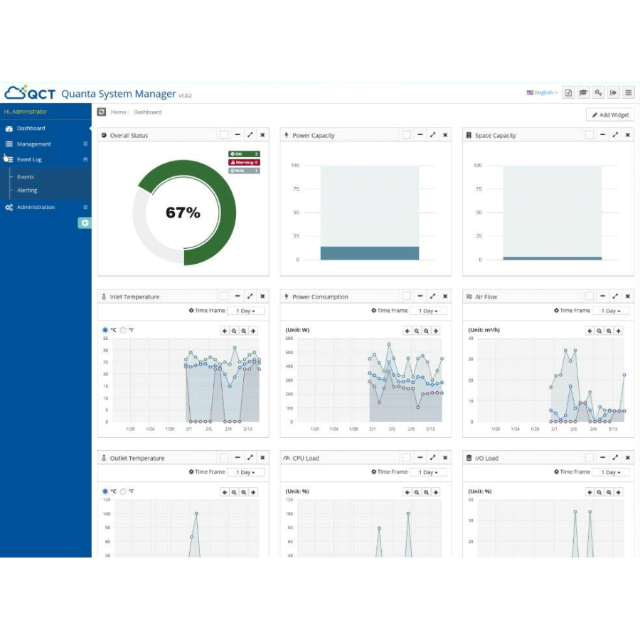 Quanta System Manager provides a secure and intuitive interface to review system hardware configuration and datacenter status information.